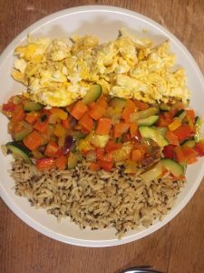 Mijn voeding is eigenlijk niet het doorslaggevende punt in mijn weight-loss-challenge. Dagelijks eten wij verse groenten en fruit, en best gebalanceerde maaltijden. Het grootste probleem voor mij zijn de dingen die ik niet at: zoals een ontbijt, en tussendoortjes (op wat gesnoep tussendoor na…)